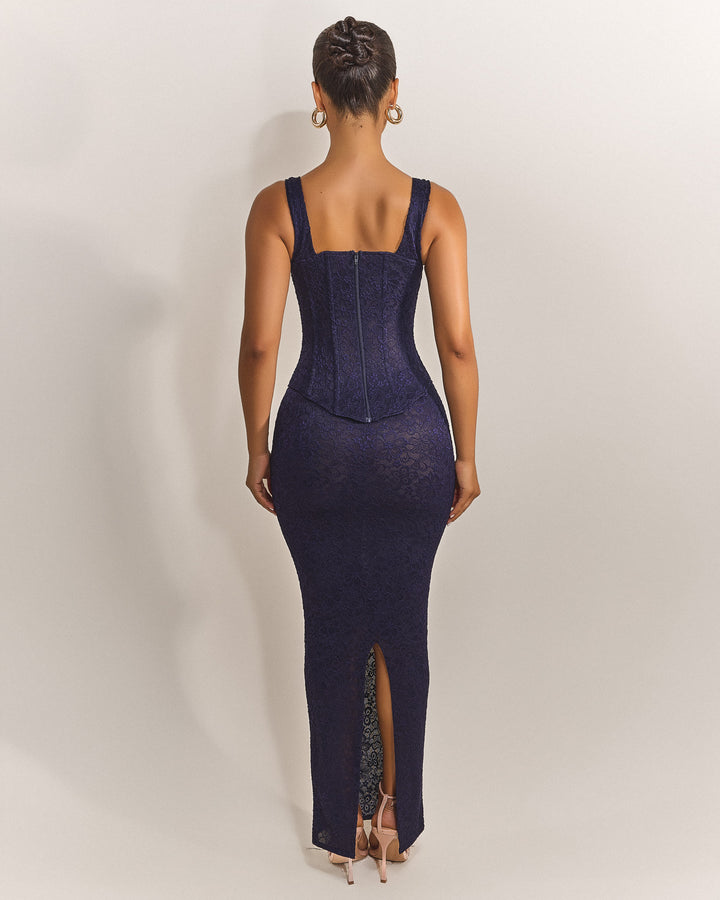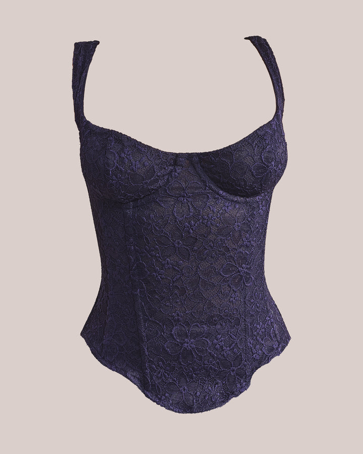 The Cinched Lace Corset in Navy