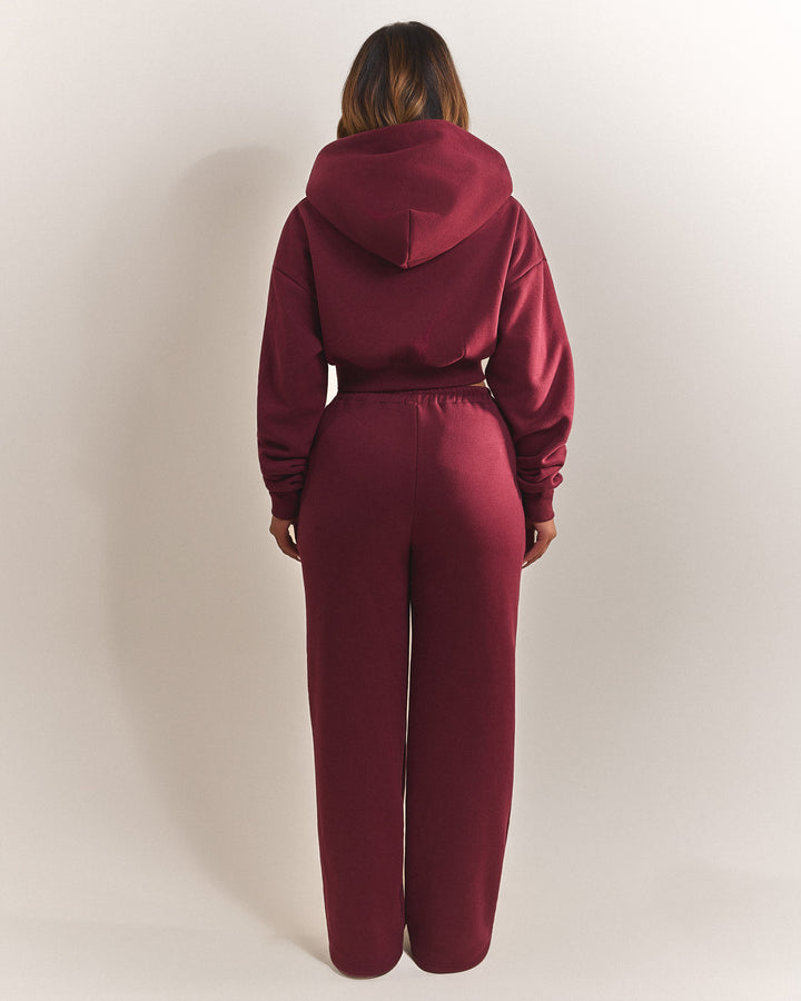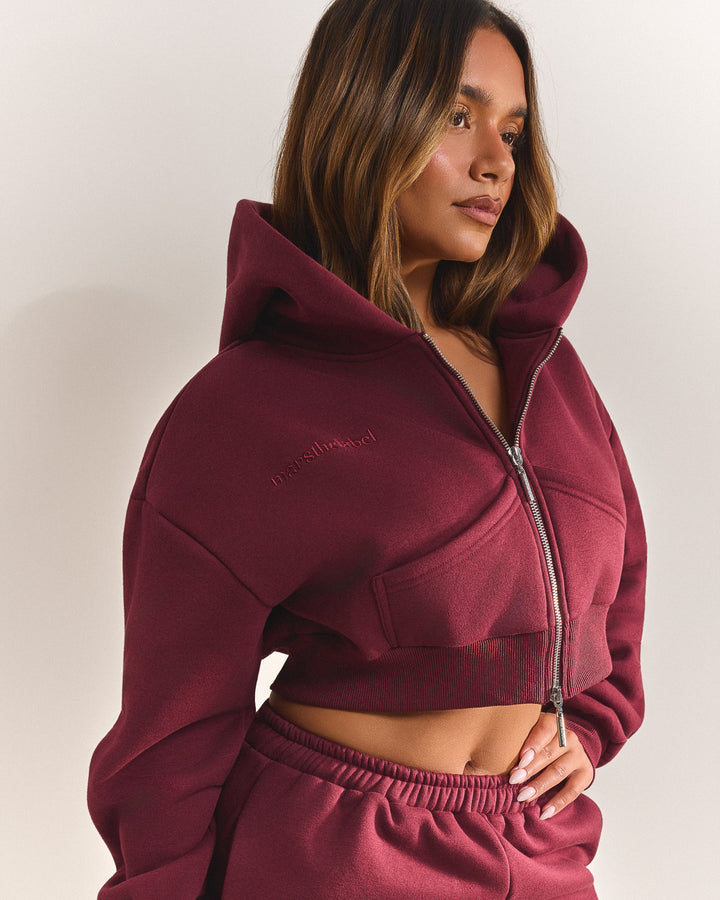 The Classics Cropped Zip Hoodie in Wine