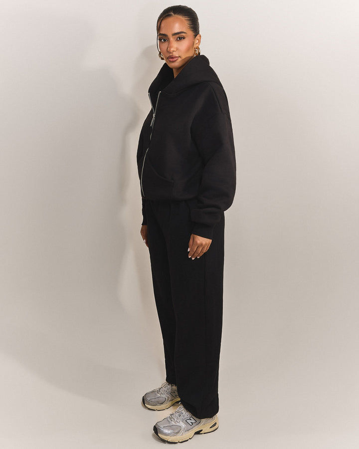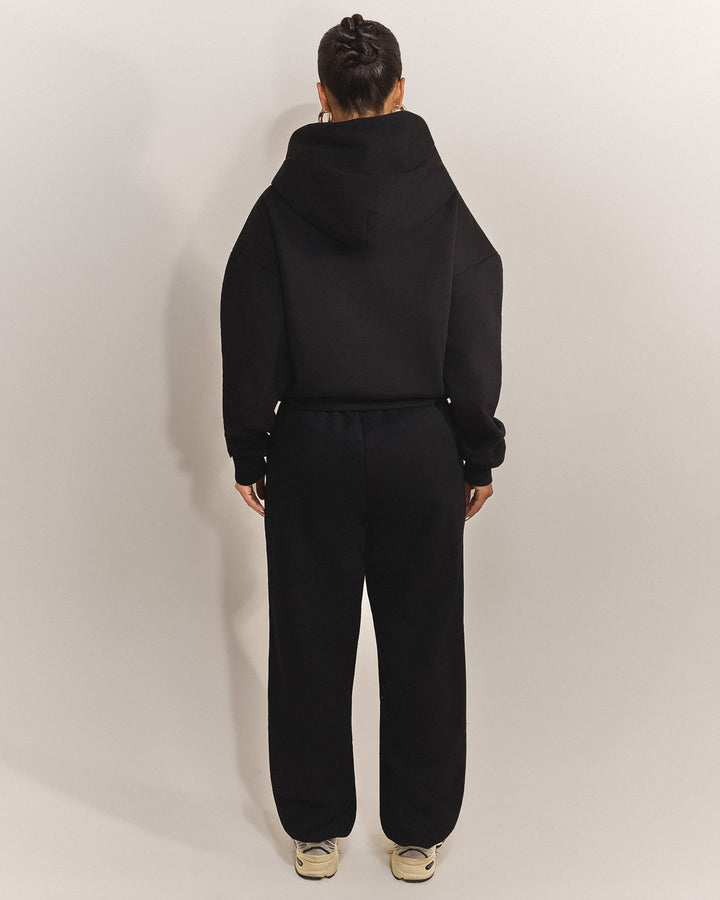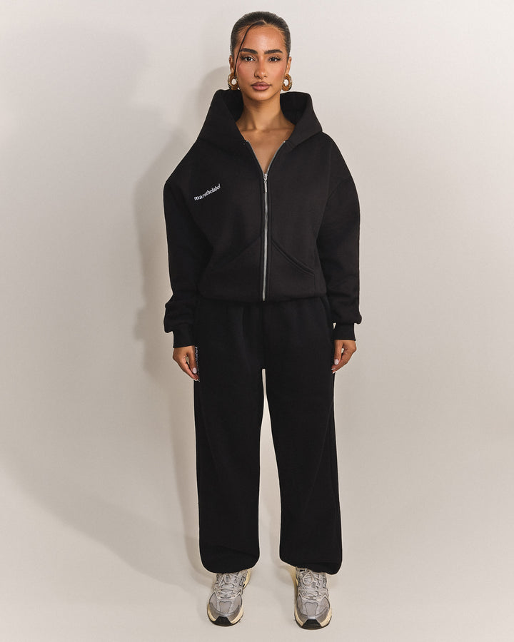 Model is 5"8 and wears a SMALL. Fits slightly oversized.