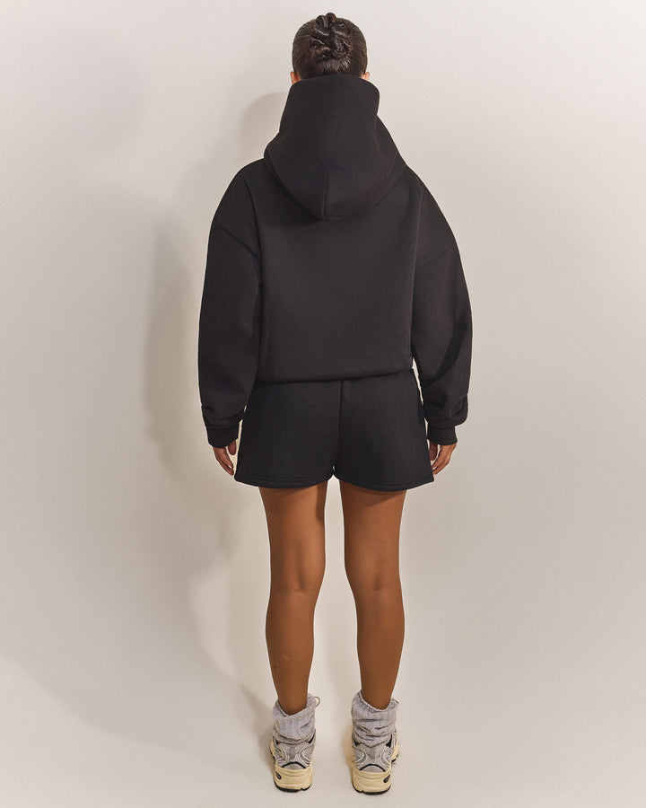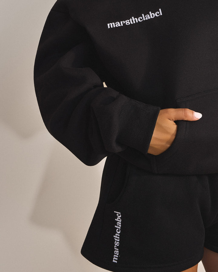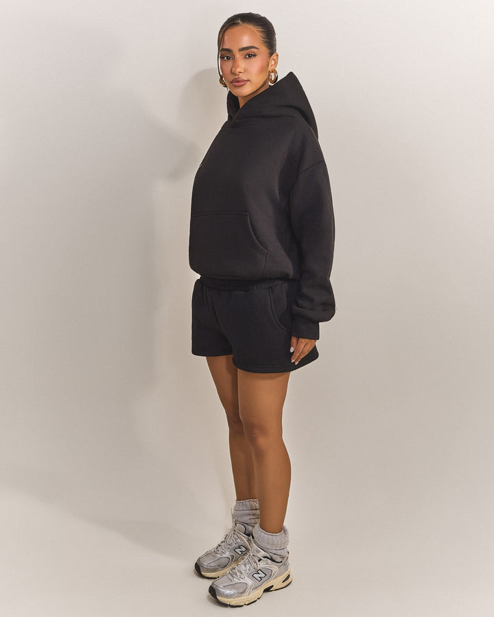 Model is 5"8 and wears a SMALL. Fits slightly oversized.