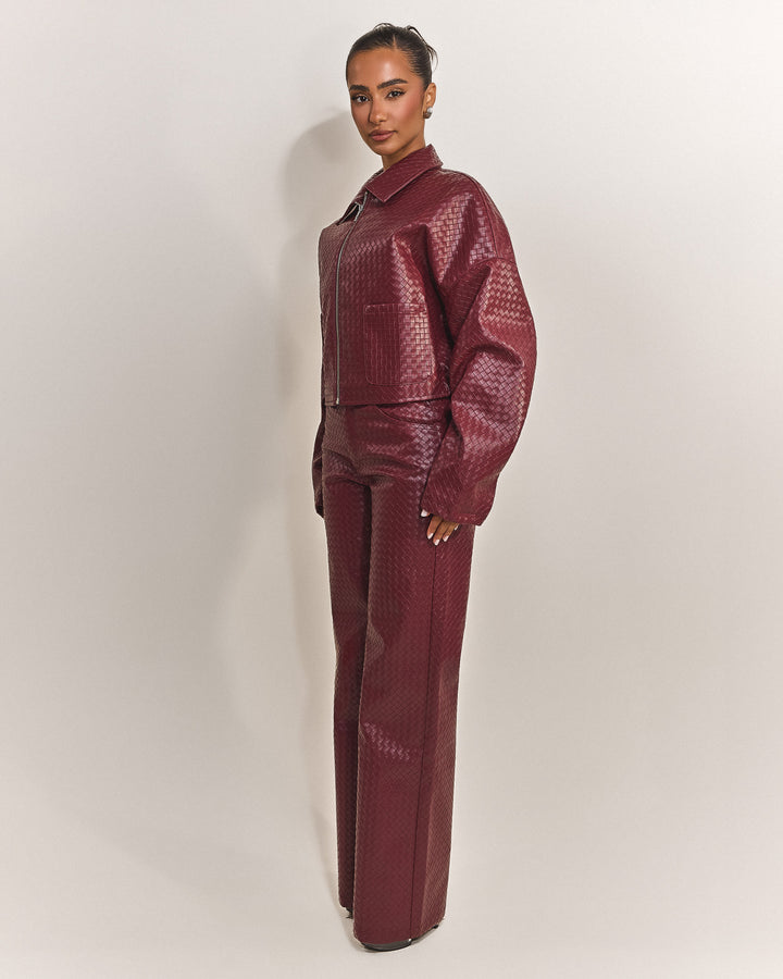 - Premium woven faux leather jacket