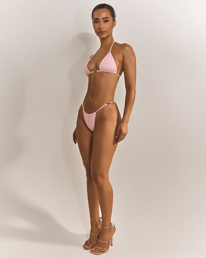Style her with: Gold chunky jewellery and Jacquemus raffia bag for a classy beach club look